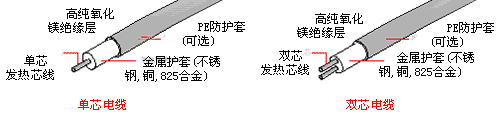 600℃;導體電阻值的范圍從28000Ω/km到19.2Ω/km;礦物絕緣電纜具有優(yōu)良的機械強度,耐腐蝕。飛拓電氣提供的加熱電纜能滿足不同功率的需要。